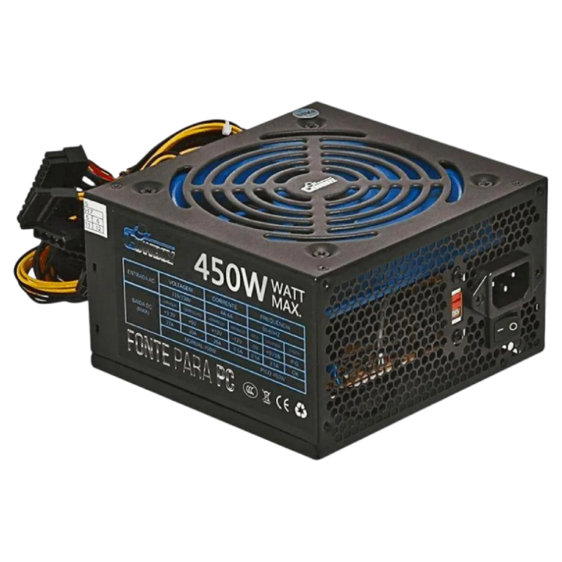 A Fonte de Alimentação ATX 450W Cowboy Gamer KP-533 Knup é uma fonte ATX bivolt projetada para desktops e computadores gamers de entrada, oferecendo 450 W de potência estável para suportar placa-mãe, processador, placa de vídeo e demais componentes; equipada com cooler silencioso, múltiplos conectores (ATX, SATA, Molex, etc.) e proteções básicas, ela garante funcionamento seguro, eficiência no fornecimento de energia e ótimo custo-benefício para usuários que buscam desempenho confiável em montagens padrão.