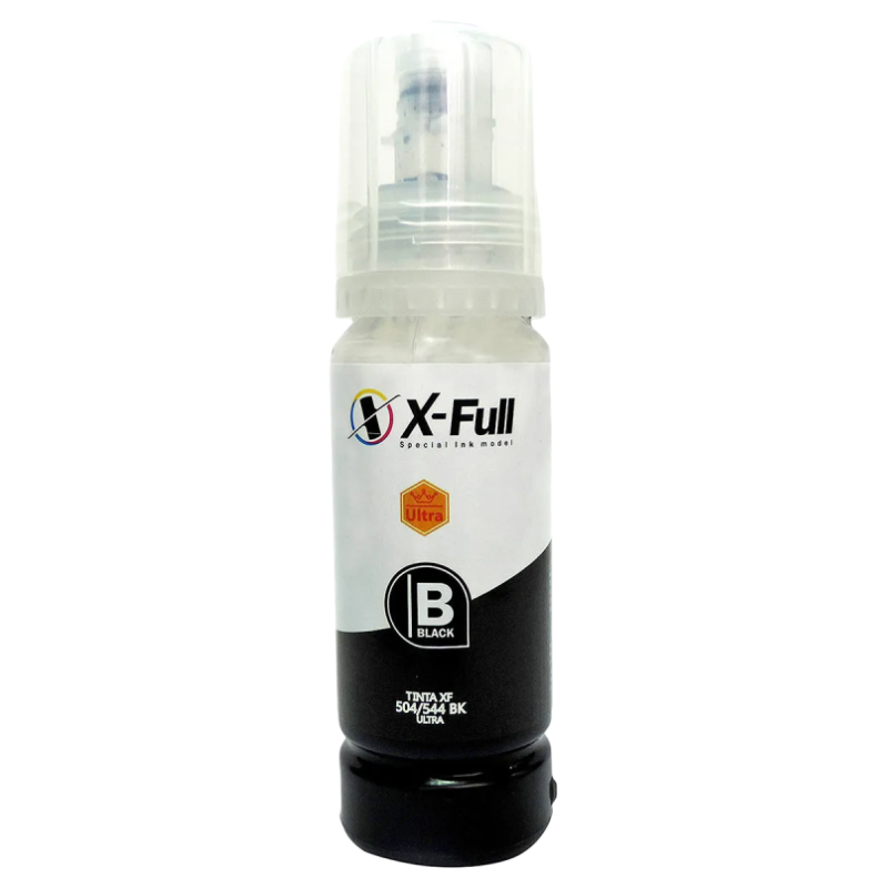 Esta Tinta Compatível Epson T504 T544 Preto Corante X-FULL 70ml foi desenvolvida para oferecer impressões com pretos intensos, alta nitidez e excelente definição. Sua fórmula corante de alta qualidade garante secagem rápida e resistência ao desbotamento, proporcionando resultados profissionais em documentos e imagens. Compatível com impressoras Epson EcoTank que utilizam os modelos T504 e T544, permite recargas práticas e seguras. O frasco de 70ml possui sistema de segurança contra vazamentos, assegurando um abastecimento limpo e eficiente. Uma solução econômica e confiável para quem busca qualidade e desempenho em cada impressão.