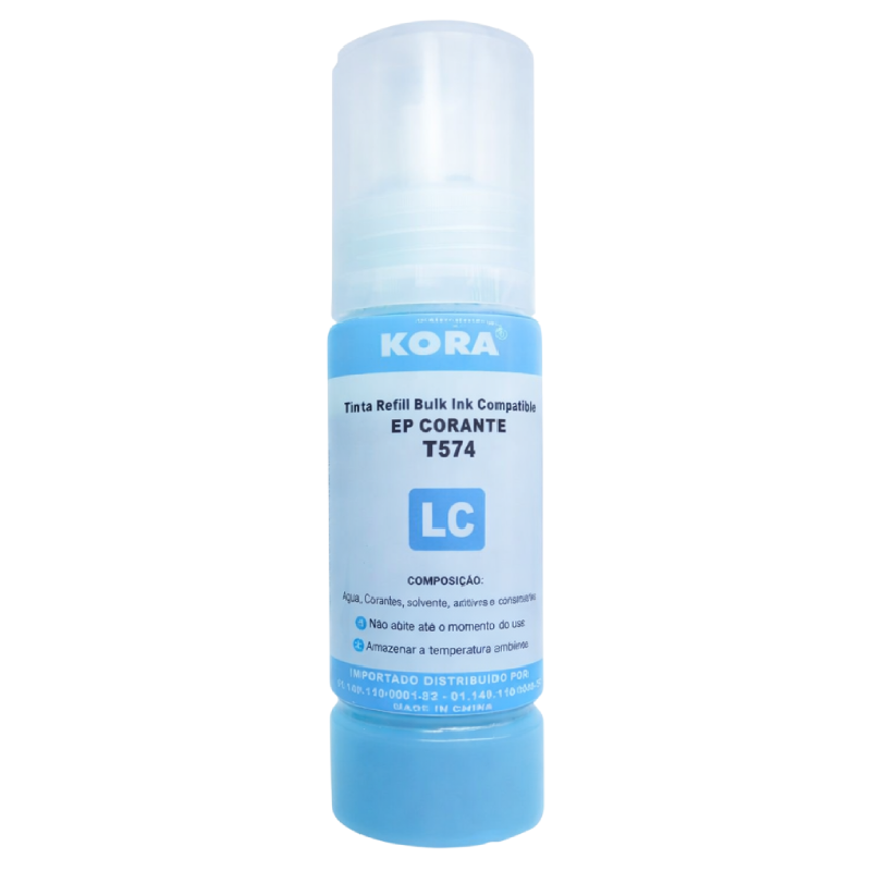 A tinta compatível Epson T574 corante Ciano Light Kora 70 ml é um refil de alta qualidade desenvolvido para impressoras Epson com sistema de tanque de tinta que utilizam a linha T574, oferecendo tonalidade ciano claro precisa e suave, ideal para impressão de fotos e imagens com transições de cor mais naturais; com 70 ml de tinta corante, proporciona boa fluidez, secagem rápida e excelente rendimento para impressões coloridas com alta definição e ótimo custo-benefício.