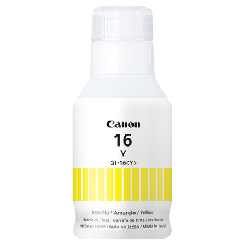 A tinta original Canon GI16 pigmentada amarelo 135 ml é um refil desenvolvido para impressoras Canon com sistema de tanque de tinta MegaTank, oferecendo cor amarela intensa, excelente fidelidade de cores e alta durabilidade nas impressões; sua formulação pigmentada proporciona maior resistência à água e ao desbotamento, garantindo qualidade consistente em documentos, gráficos e materiais coloridos, além de alto rendimento e recarga prática graças ao frasco com bico inteligente que evita vazamentos.